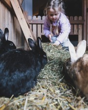 Der Umgang mit Tieren bereitet allen Generationen eine ganz besondere Freude. Wir möchten mitgeben was es heißt für unsere pelzigen Freunde Verantwortung zu übernehmen. Hühner, Ziegen, Schafe und süße Miniponys freuen sich auf einen Besuch im Minibauernhof. Hier huschen auch die Hof Katzen ab und zu vorbei und freuen sich über liebevolle Streicheleinheiten. Hasen- und Meerschweinchen-Familien warten im Indoorbereich, dieser ist beheizt damit sich jeder richtig wohl fühlt. Freihoppeln ist auf der direkt angrenzenden Hasenwiese angesagt. Regionalität, Bodenständigkeit und Naturverbundenheit ist uns sehr wichtig. Der traditionelle Bauerngarten bietet Einblick in die Vielfalt der Natur.